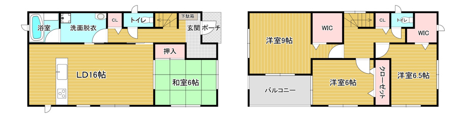 上記図面は1号棟の図面になります。全部屋南向きの4LDKでウォークインクローゼットが2ヶ所もありますので収納に困ることはなく、季節物の保管や、子供さんの思い出の品など保管もできますのでお部屋の整理もし易い間取りになっております。他の2号棟、3号棟も納戸のある家で収納の良い物件でございます。